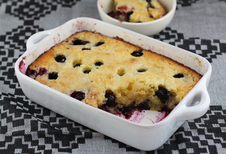 - Sprinkle most of the blueberries over the bottom of the prepared dish, reserving a small handful for the top. Squeeze the lime juice over the top of the blueberries. Spoon the batter over the berries and spread out to evenly cover. I find a slightly damp hand the best tool for this. Press the remaining berries over the top of the batter, then sprinkle over the remaining 1 Tablespoon of sugar.