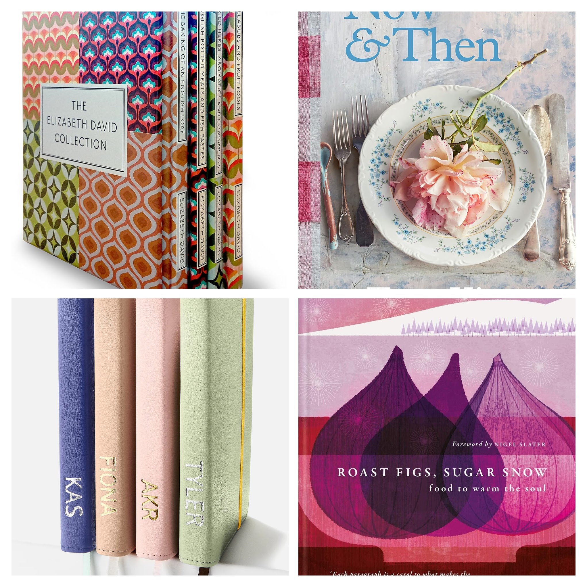 Elizabeth David was one of the greatest British food writers ever, and this lovely bound set of some of her books are a thoughtful gift. Roast Figs and Sugar Snow is a favorite cozy cookbook of mine, and this new edition is a perfect winter gift. Tessa Kiros cookbooks are gorgeous and her latest Now and Then deserves a space on the shelf. Or how about a personalized notebook for jotting down recipe notes.