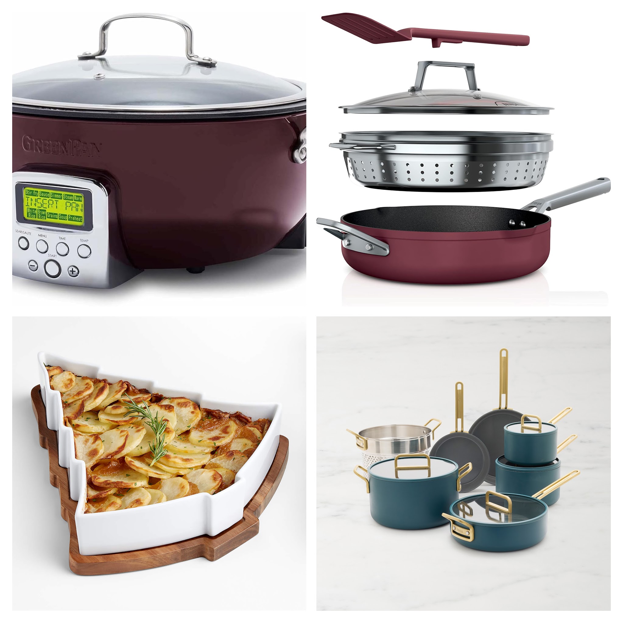 Jazz up your Christmas table with this tree shaped baker with wooden trivet. I am a big fan of this practical, dishwasher safe pot set (even more than the viral everyday pan). And for the Stanley Tucci stans, any piece of his beautiful cookware collection will thrill. I am loving this slow cooker that browns, simmers, sears and slow cooks and is dishwasher safe.