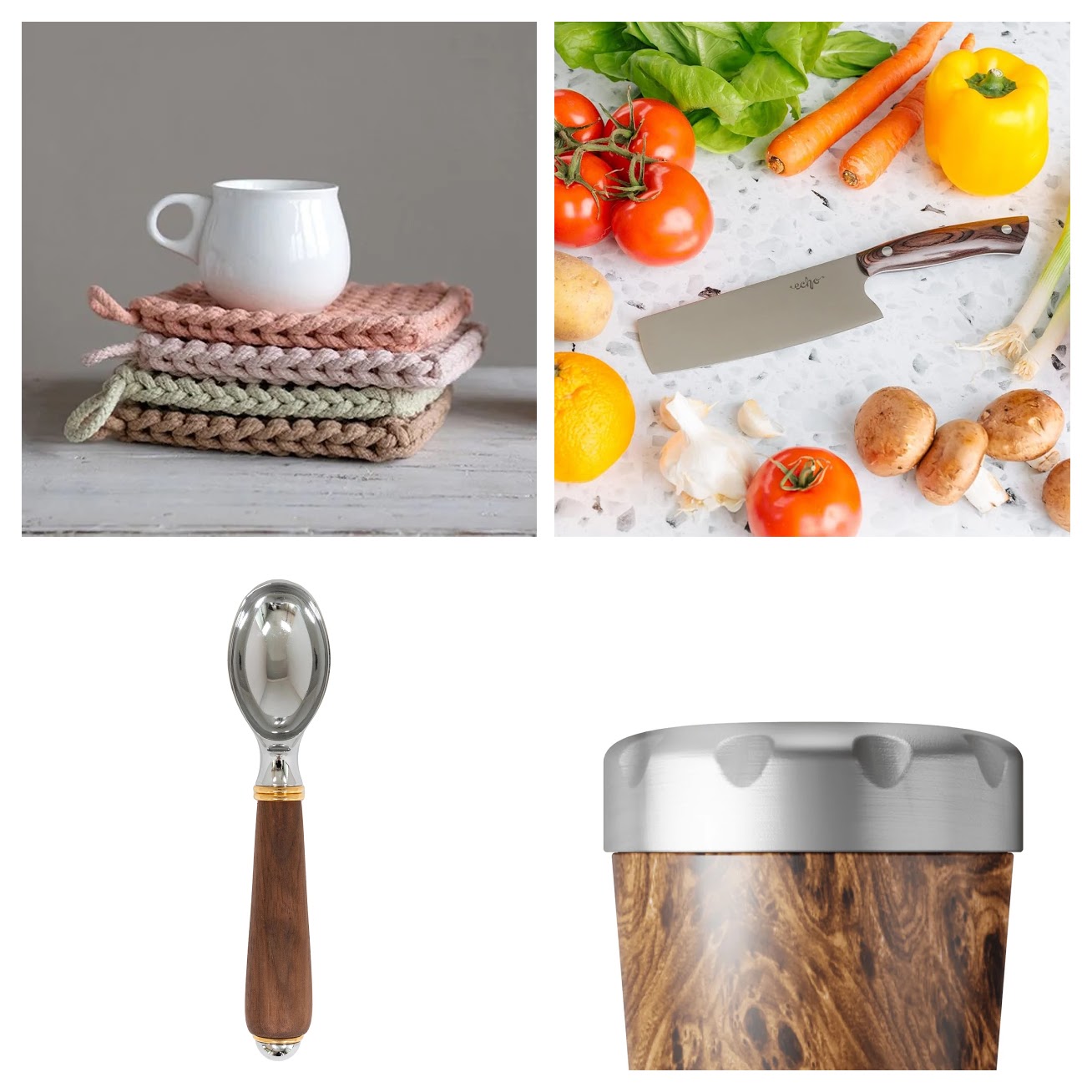If you’ve got an ice cream lover on your list, up their game. Drop a pint carton into this ice cream chiller and serve it up with elegance. And don’t forget the scooper, this hand-turned wood handled version definitely takes it up a notch. A serious cook needs a serious knife, and this beautiful hand-forged Middleton Made 6-inch knife would make a very special gift. Useful and attractive, these crocheted potholders make a great stocking stuffer.