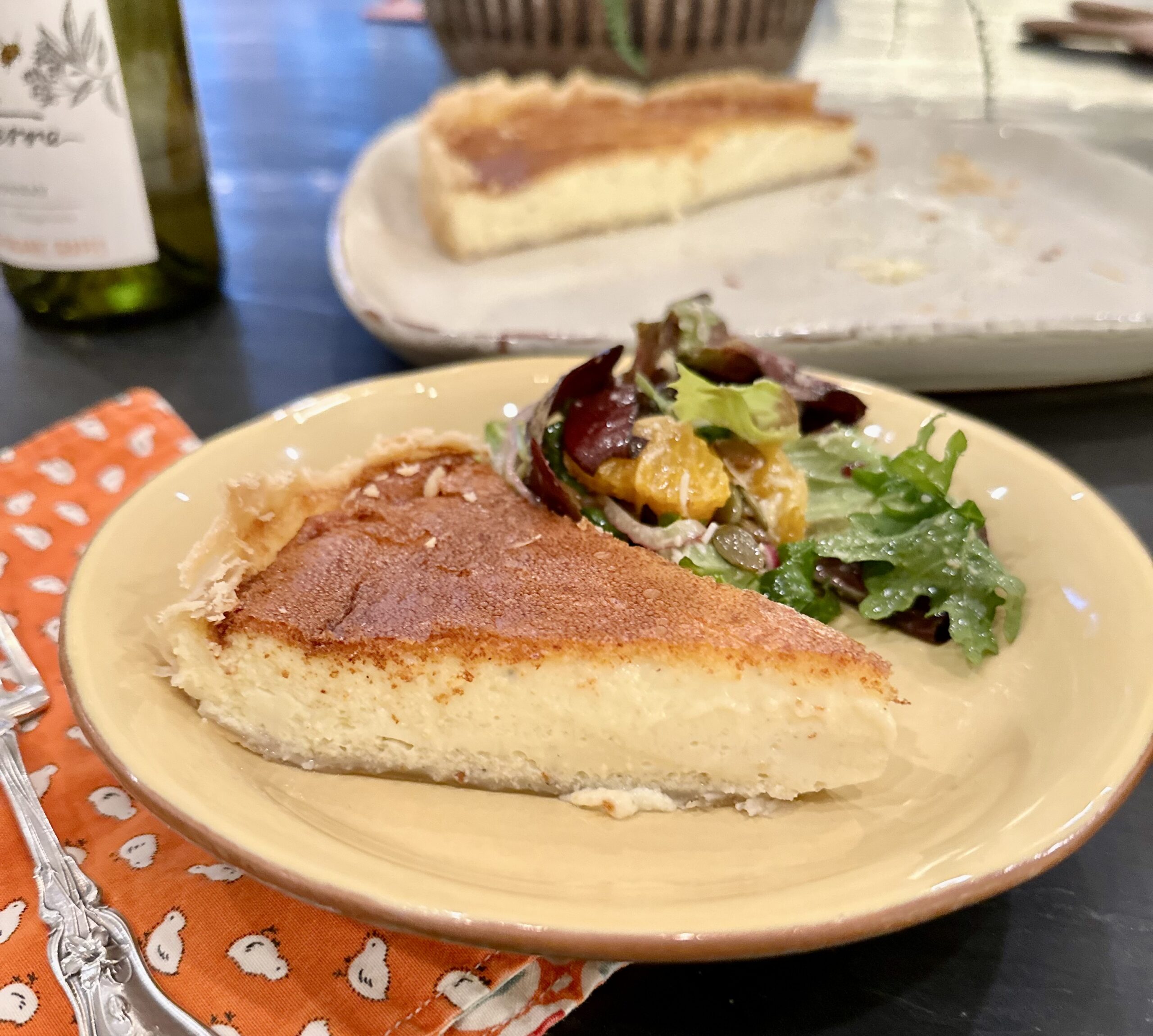 Bake in my home kitchen, I looked up the recipe on the internet and very helpfully found an old newspaper article with the very recipe from the restaurant. I immediately set out to make it, but my first attempt was not what I was hoping for. I followed the recipe precisely (even the pastry) but my cheese was something of a stingy mess and it lacked the light as air texture. My second attempt was very weird in that the tart just didn’t set. It took like an hour and half in the oven. I still don’t know why. So I revisited it and came up with the closest approximation I could possibly achieve. Blending everything in the blender to a smooth custard creates that light-as-air filling with strong but subtle flavor. And it really could not be easier, while the reward is spectacular. I am sure the one at Noble Rot has some magic cheffy secret I couldn’t unlock, but this is a damn good version.
