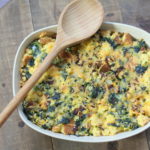 Any Southerner will tell you that you must eat greens on New Year’s day. It insures prosperity in the year to come (and black eyed peas) for luck. And if you got a big pot of greens to serve up, you just have to have some cornbread to go with it. So here, I have combined the two into a lovely casserole in the style of a savory bread pudding. Frozen chopped greens are a perfect … [Read more...] about Collard and Cornbread Pudding
