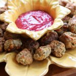 Thanksgiving involves a lot of food. But even when I know how much will end up on the table, I like to put out a little nibble for guests before the main event, while we finish cooking the turkey, have a few friendly drinks and settle in with each other. Sausage balls are one of my very favorite snacks at any time, and a great childhood memory for me and my brother, so when I … [Read more...] about Thanksgiving Sausage Bites with Cranberry Mustard Dip